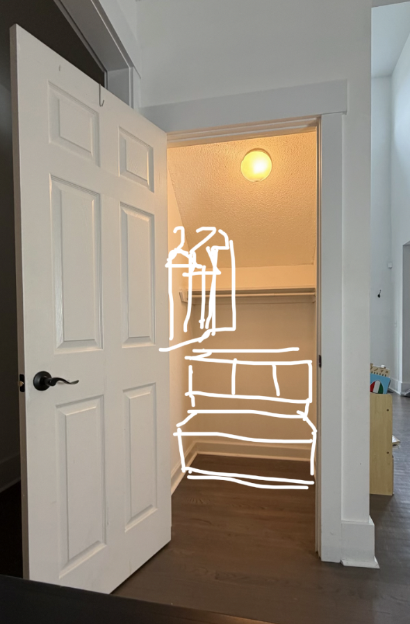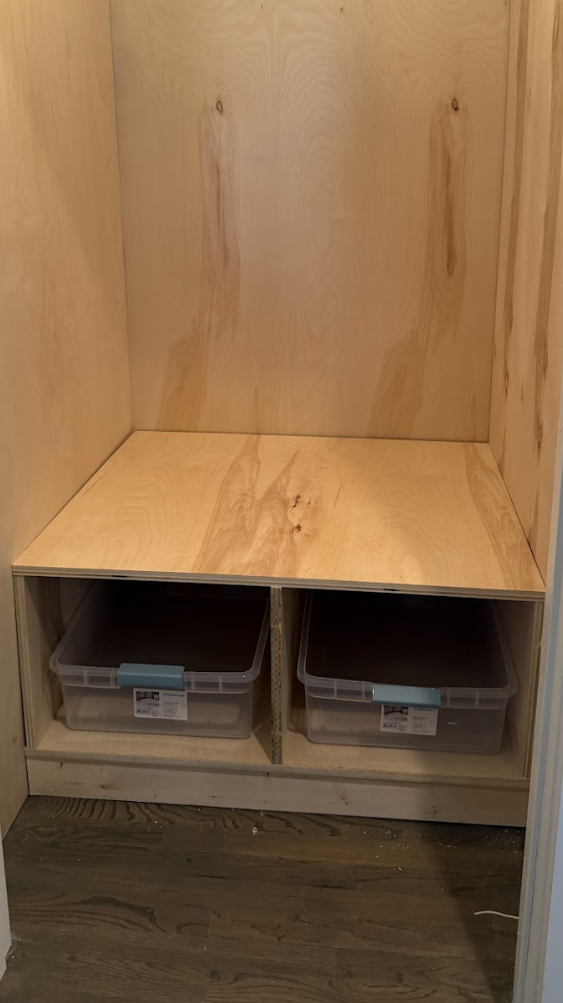 Tip: Cut each piece, pre-assemble, sand everything down and apply polycrylic before assembling this closet to create a smooth, clean finish.