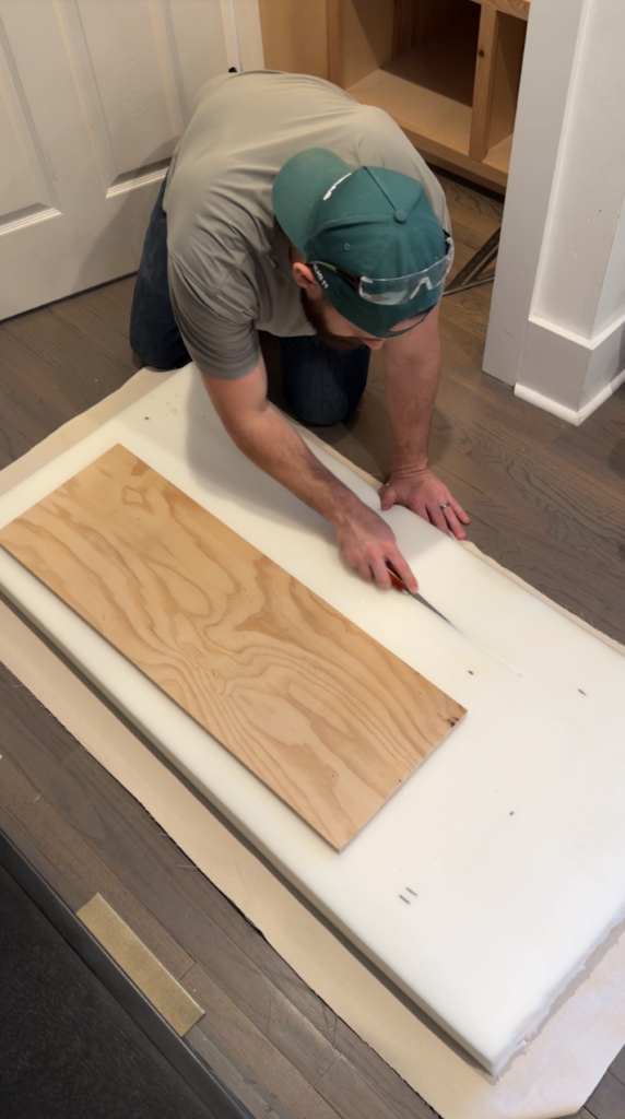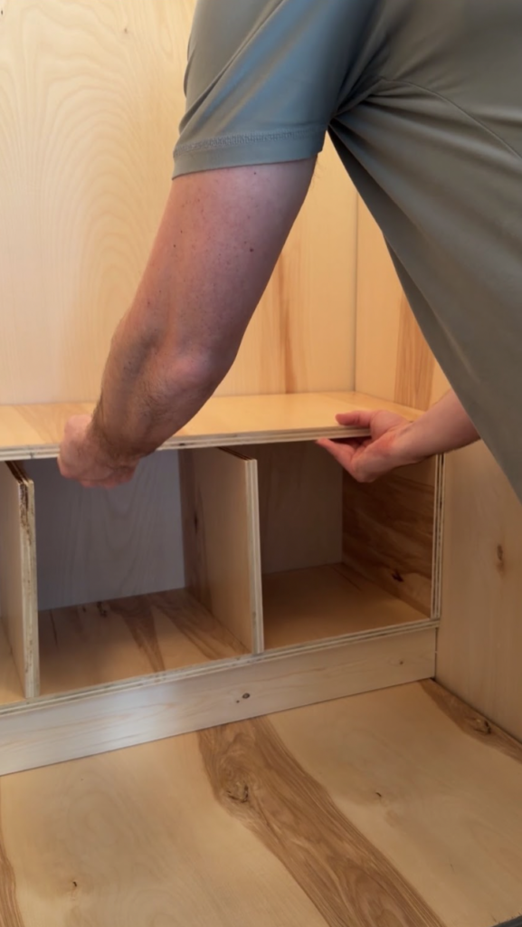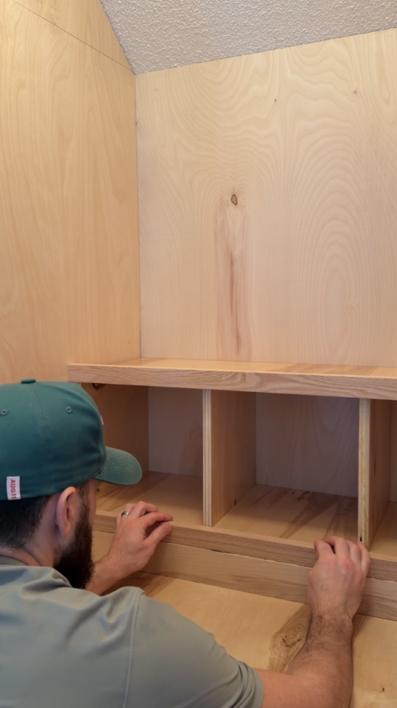 Cut your upper shelf and divider pieces.