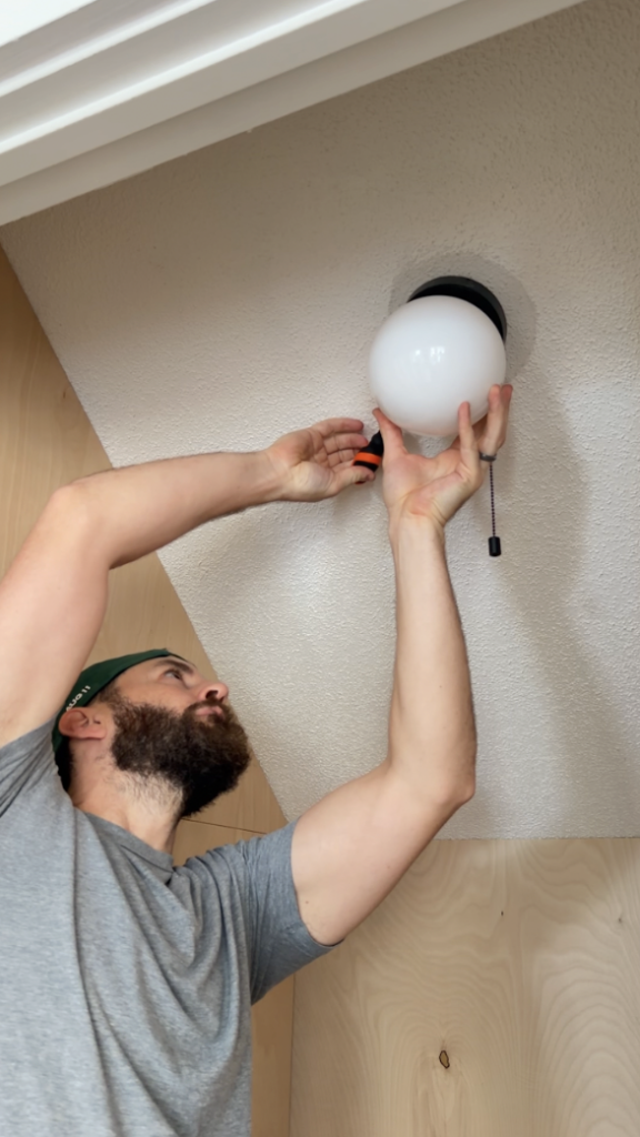 I also swapped in a wooden light switch cover so it blends seamlessly with the overall look, and updated the light fixture.